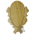 Solidna, elegancka deska pod oręż dzika wykonana z wysokiej jakości drewna dębowego. Ręcznie rzeźbiona i lakierowana na kolor palisander półmat, który doskonale prezentuje się na jasnych ścianach. Deska pod oręż dzika ma wymiary 20cm x 18cm (średnica powierzchni użytkowej: 12cm), a jej grubość to 18mm. Praktyczny otwór umożliwia łatwe zawieszenie deski pod oręż dzika na ścianie, co czyni ją idealną do ekspozycji trofeów myśliwskich, takich jak szable dzika.